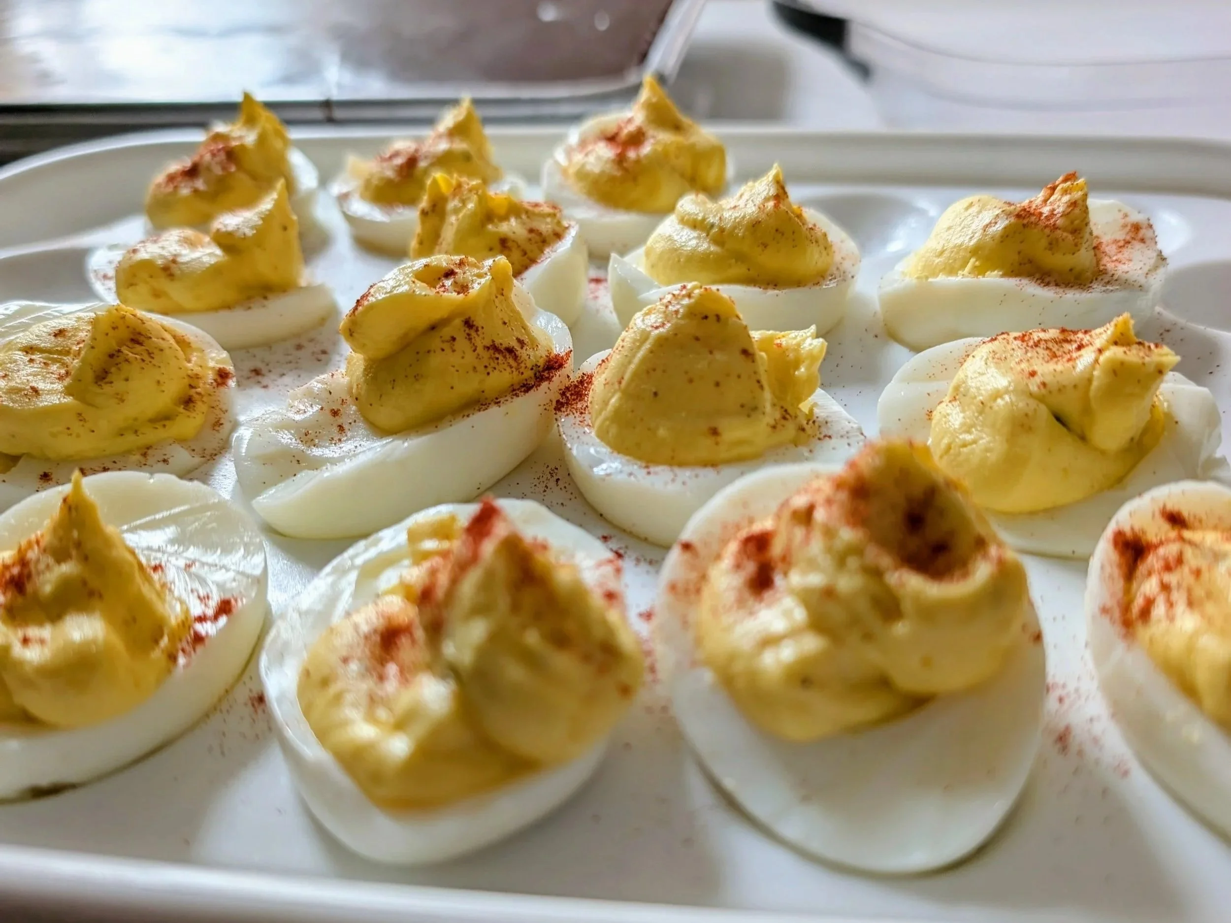 If you’re lucky enough to still have some colored eggs, this is a great option. I really really REALLY tried to make them like my mom’s but, they still didn’t taste exactly the same. But, my son-in-law said they were good. So here’s what I did!