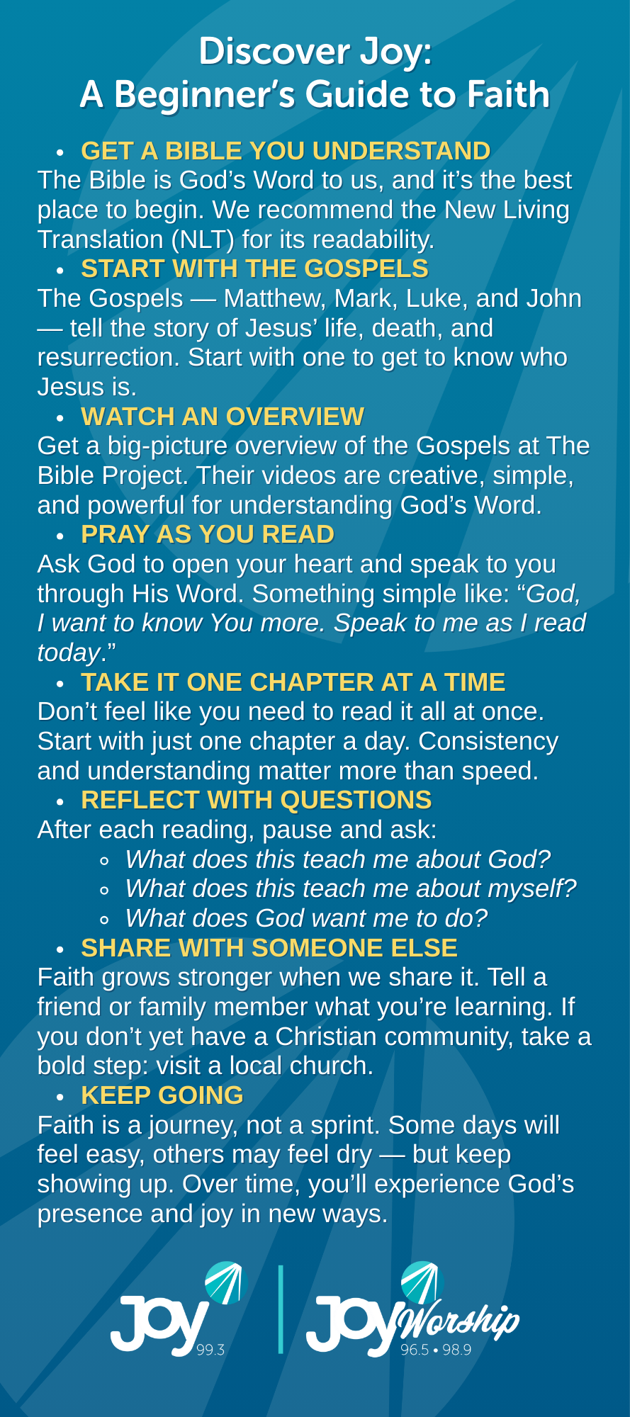 Here’s a starting guide to help you Discover Joy in the journey with Christ.